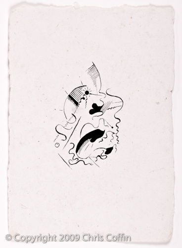 painted on Indian Village handmade paper from the 1980's. The paper from this time was very rough in both size and texture.